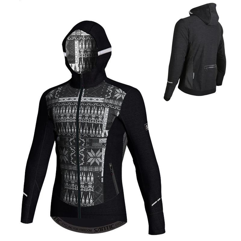 Santic Cycling Hooded Jacket Winter Men Elastic Sportswear Keep Warm Windproof Thermal Mountain Roa