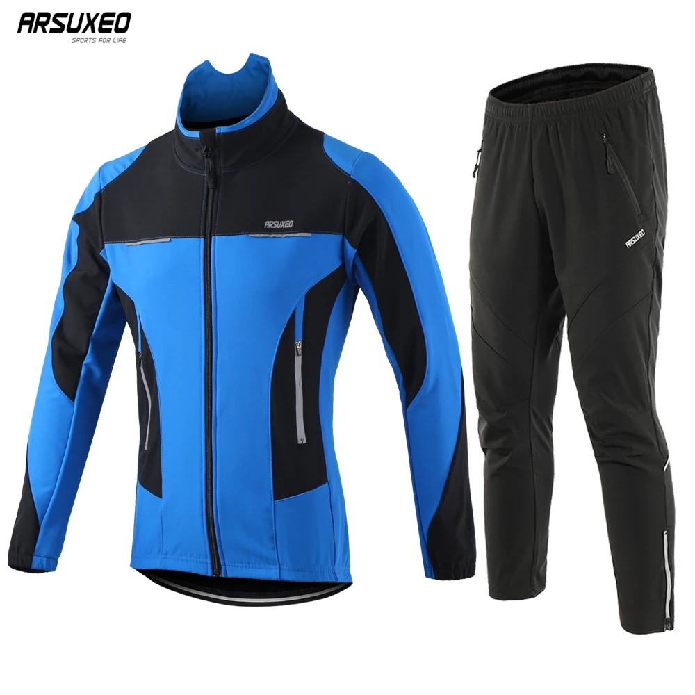 BEST SELLER ARSUXEO Men Winter Cycling Jacket Set Windproof Waterproof Bicycle Pants Trousers Thermal Sportswea